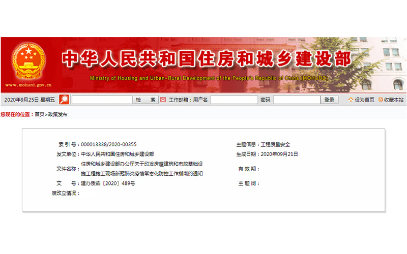 近日住建部印发《房屋建筑和市政基础设施工程施工现场新冠肺炎疫情常态化防控工作指南的通知》