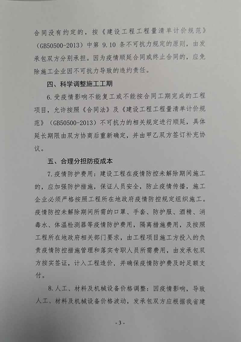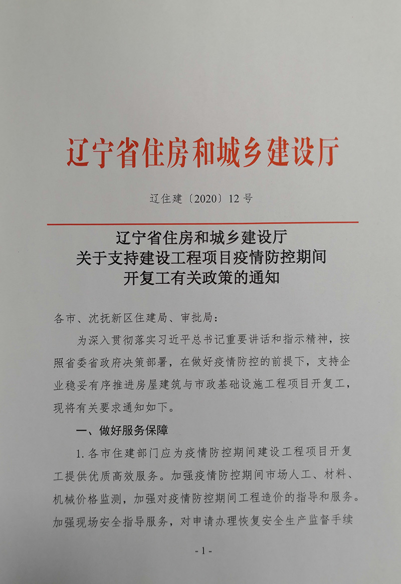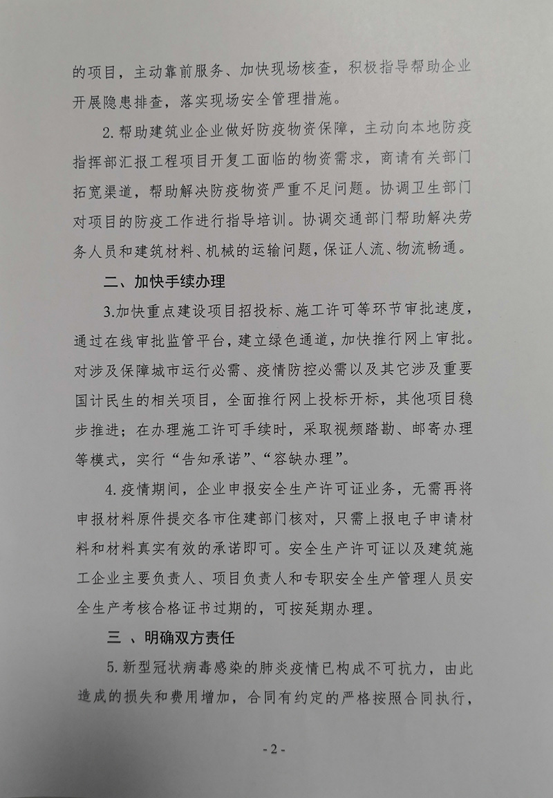 关于支持建设工程项目疫情防控期间开复工有关政策的通知