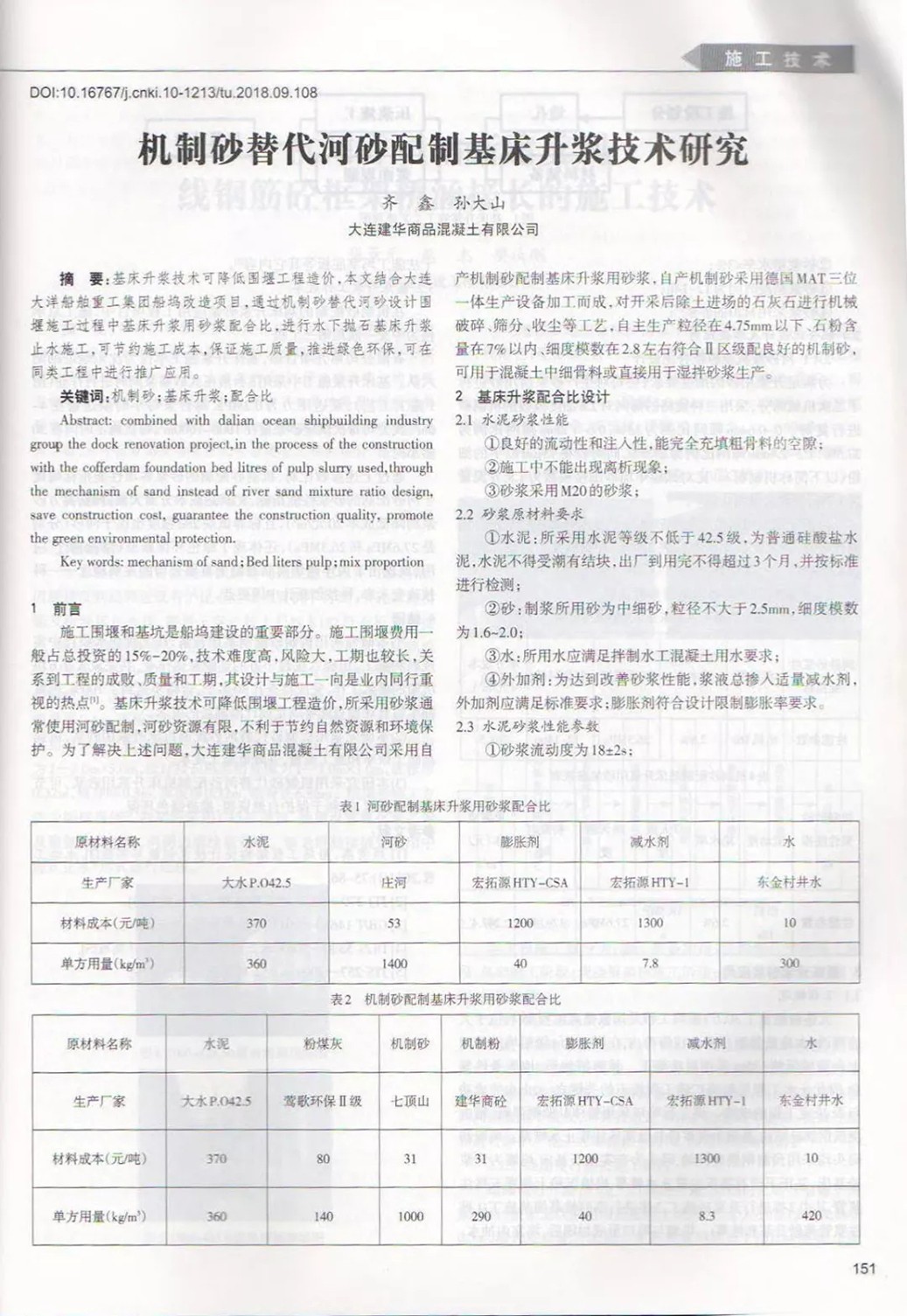 一直以来,大连九游网页版页面登入界面商品混凝土有限公司始终将产品开发与技术创新作为企业发展的立足点和核心竞争力,积极组织混凝土技术人员深入开展对机制砂混凝土性能的实验研究,经过大量的试验和反复的施工实践,终于探索出了机制砂替代河砂配制基床升浆的技术,该技术已通过专家论证审核,论文已发表于国家级期刊《绿色环保建材》(2018年9月)。